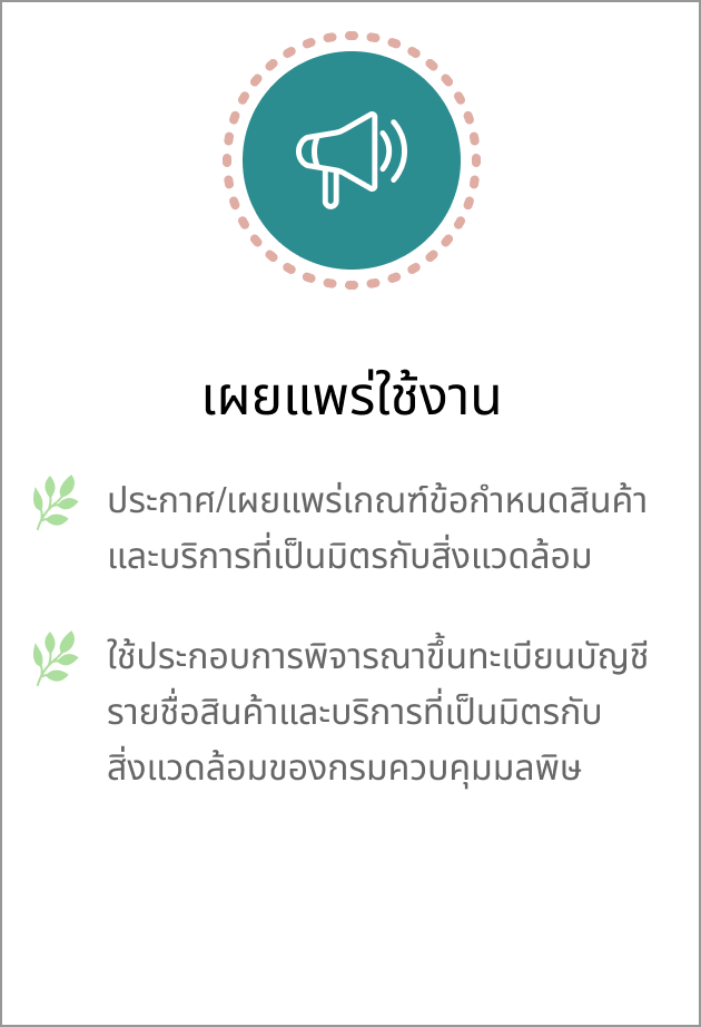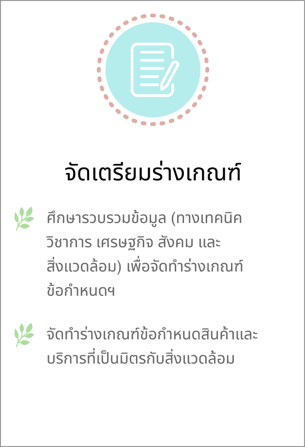 การจัดทำเกณฑ์ข้อกำหนดสินค้าและบริการที่เป็นมิตรกับสิ่งแวดล้อม เพื่อใช้ประกอบการพิจารณาขึ้นทะเบียนในบัญชีรายชื่อสินค้าและบริการของกรมควบคุมมลพิษ