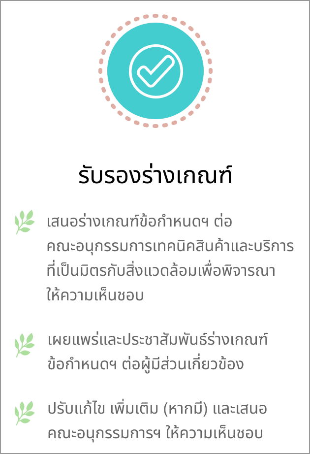 การจัดทำเกณฑ์ข้อกำหนดสินค้าและบริการที่เป็นมิตรกับสิ่งแวดล้อม ปัจจัยสำหรับการพิจารณา และ ขั้นตอนการจัดทำเกณฑ์ข้อกำหนด
